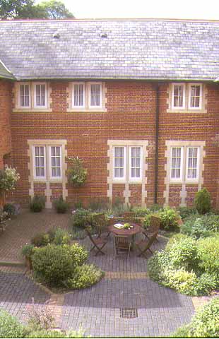中庭も芝生が青々とし、がちょうが朝夕にやってきます。監視カメラが24時間機能し、 安全対策も万全です。